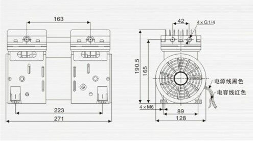 5.檢查壓縮泵各元件無(wú)異常后,將電源線(xiàn)插頭插到符合要求的電源插座上(電源插座必須接地良好),機(jī)器開(kāi)始工作。