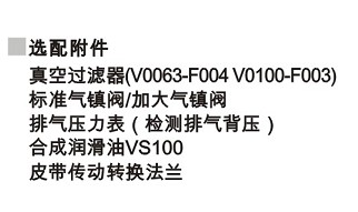 工作要求: 進(jìn)口壓強(qiáng)在大于6500Pa時連續(xù)工作時間,不得超過3分鐘以免噴油引起泵損。